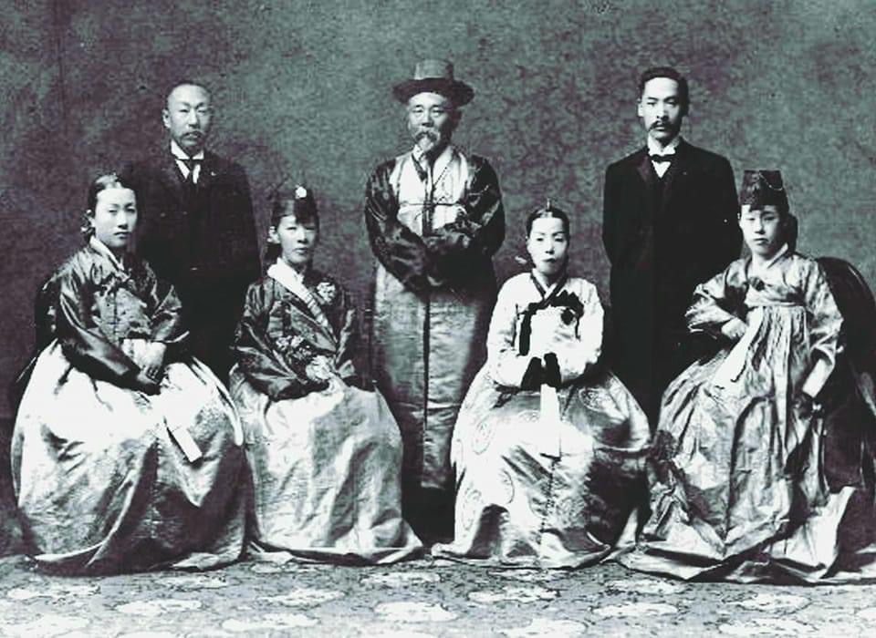 (사진/ 1915년 신정매일신보에 실렸고 1906년 12월 을사오대 중 한 명인 이지용 일가와 조선 내무부 장관 이토 히로부미와 함께 촬영한 것이다.)