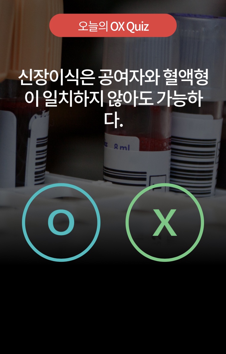 – 공여자가 건강하다면 혈액형이 달라도 전처리를 통해 신장이식을 할 수 있다.