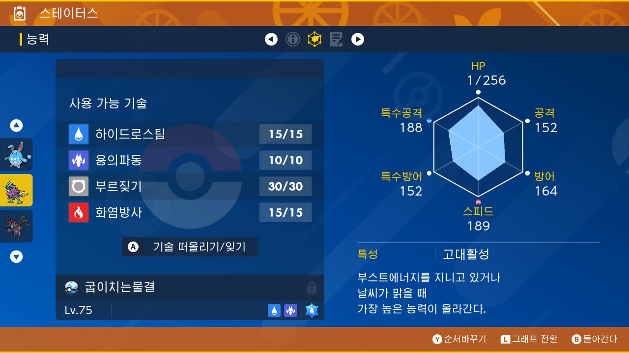 능력: 하이드로 스팀, 드래곤 웨이브,
