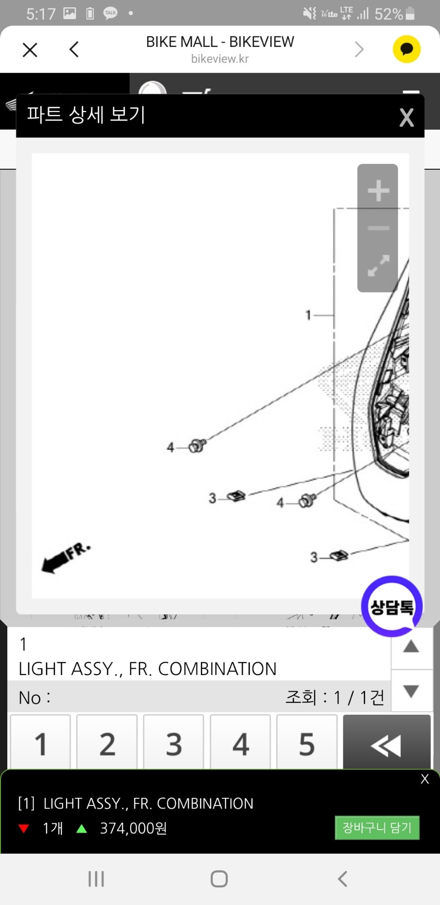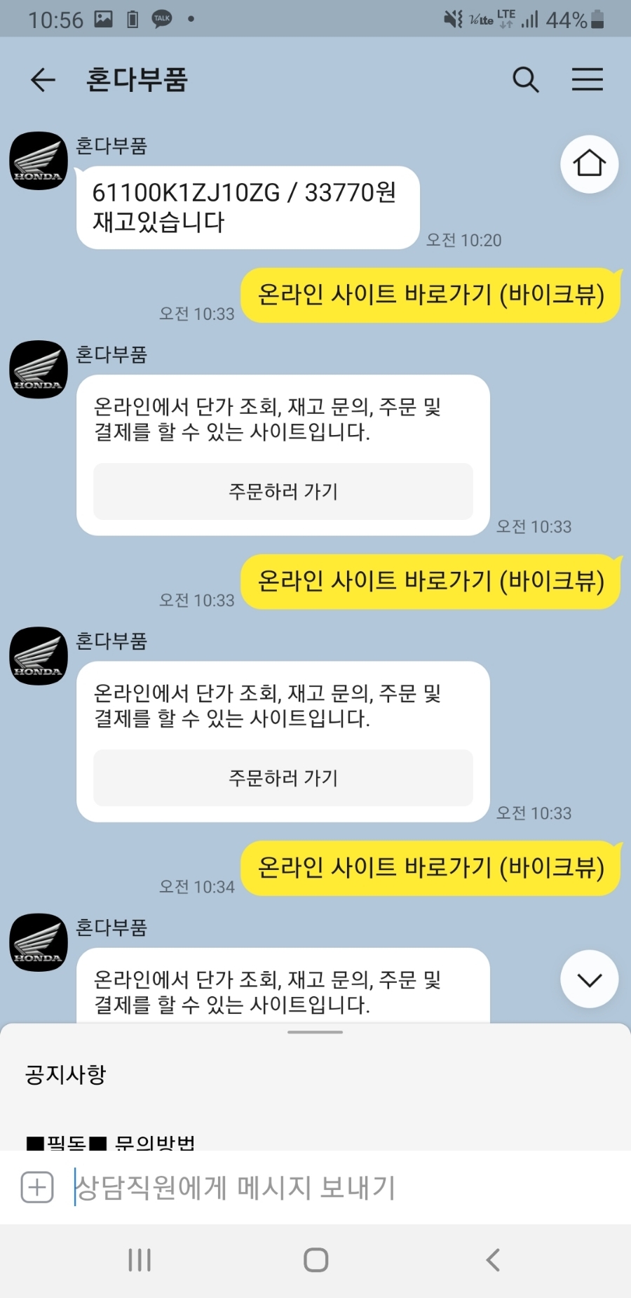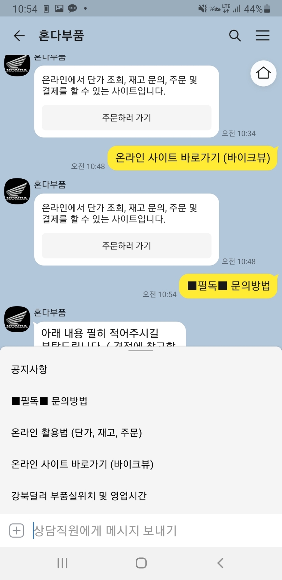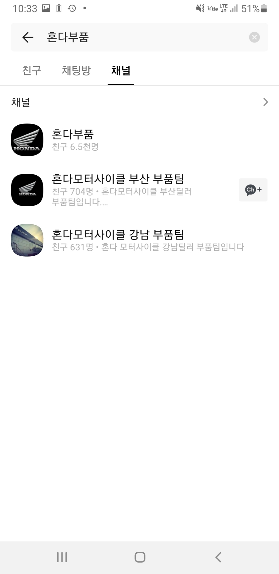 카카오톡 프렌즈 – 위 돋보기(검색)창에 혼다 부품 입력